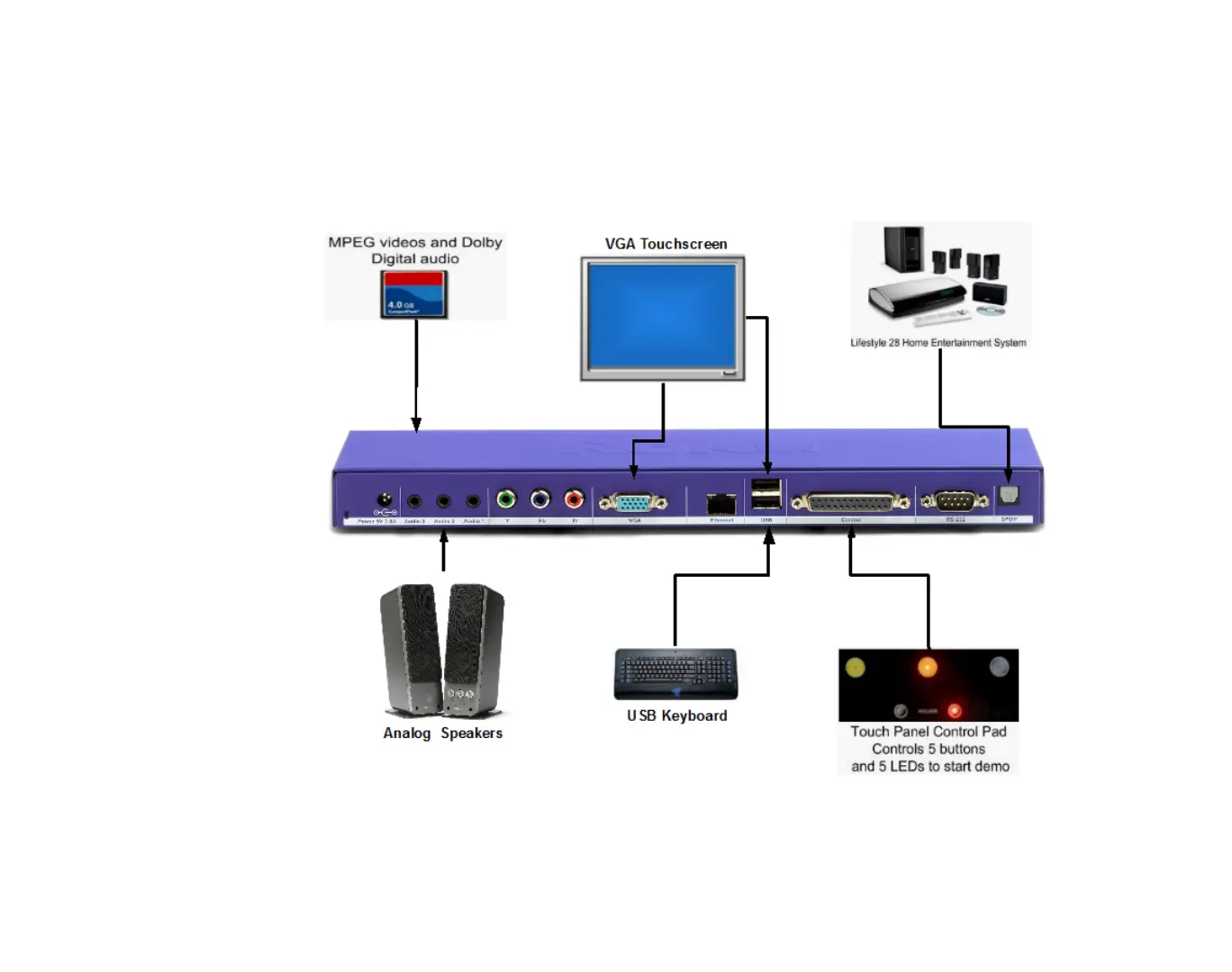 add interactivity by connecting an input device such as a keyboard, touch screen, button board,