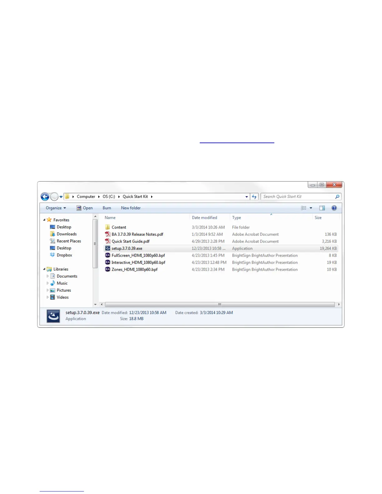 3. Double-click the Setup.exe file and follow the on-screen instructions to install the BrightAuthor software.