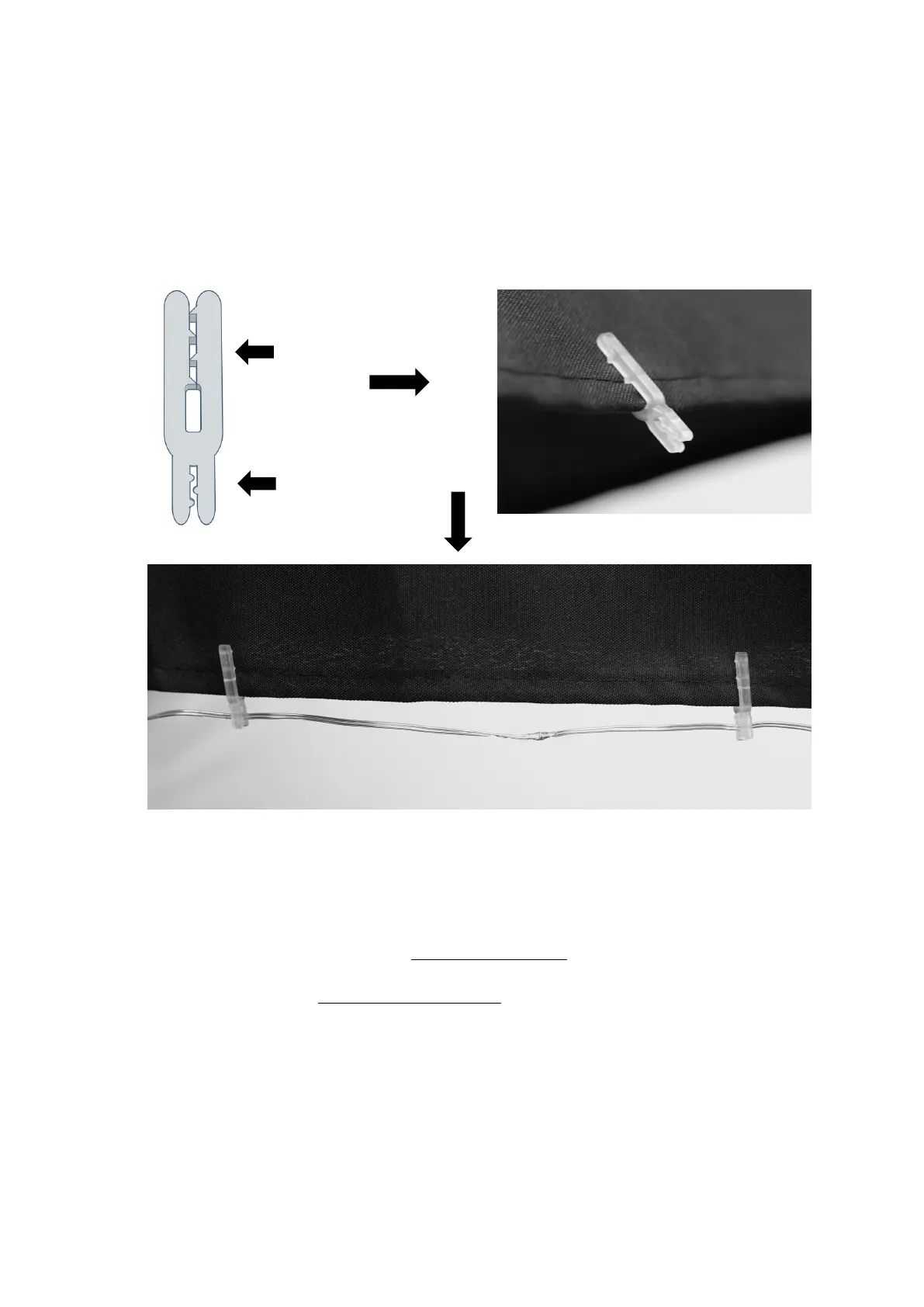 attach the clips, slip the edge of the canopy fabric into the long, narrow side of the clip.