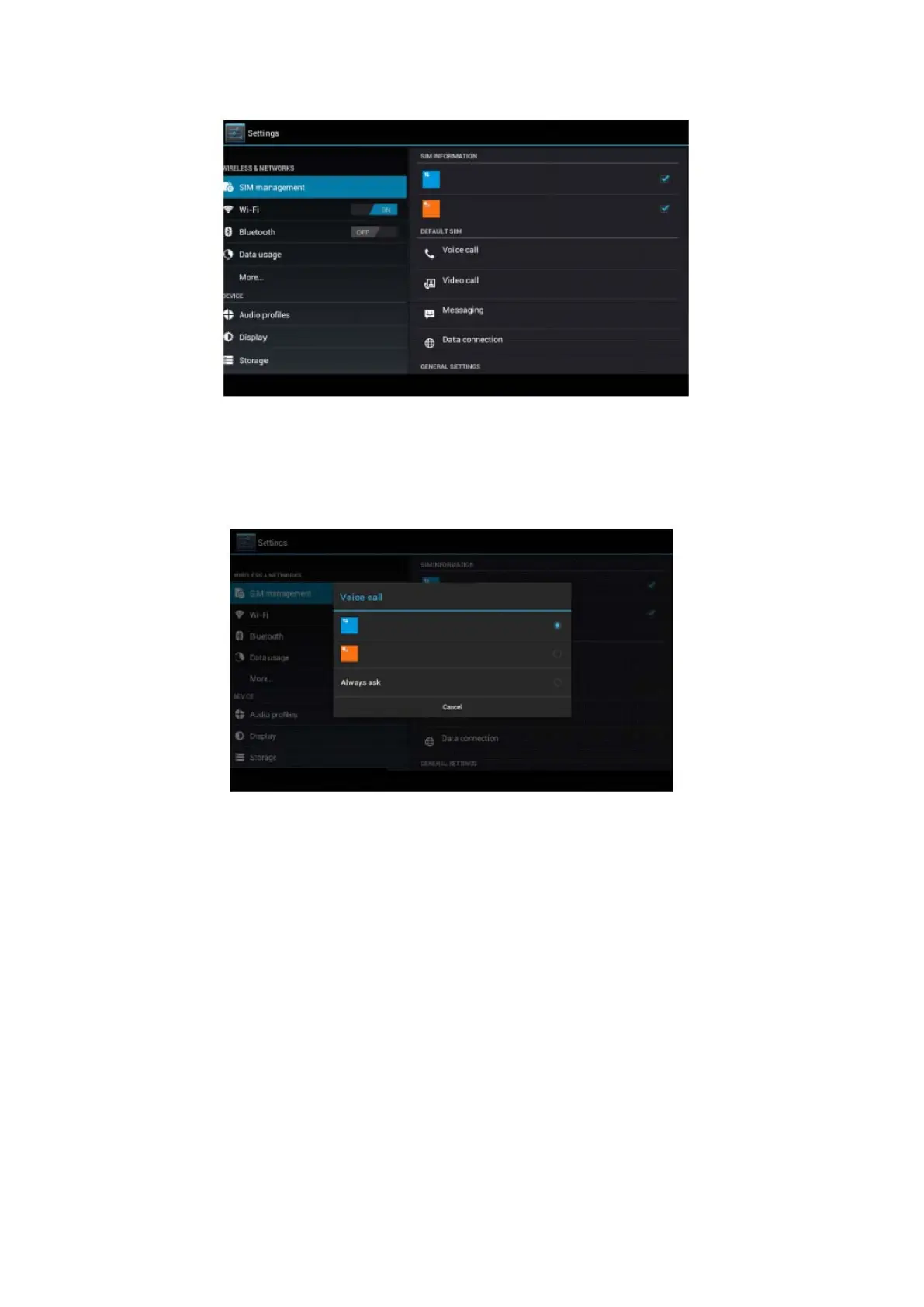 Haz clic llamadas de voz, seleccione la tarjeta SIM por defecto: