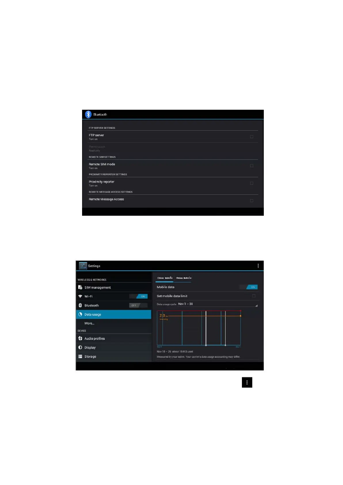 Para comprobar el uso de datos WIFI, presione el icono y haga clic