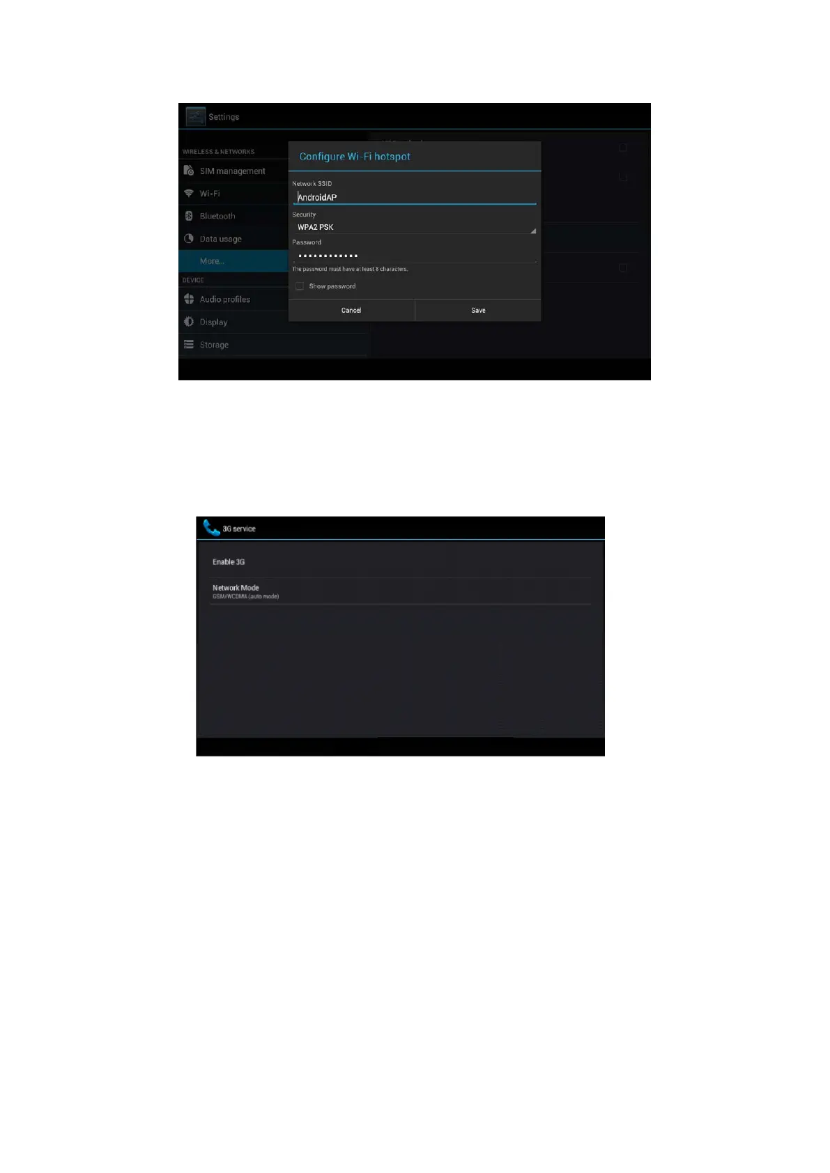 Servicio 3G: haga clic en servicio 3G y la tarjeta SIM por defecto. GSM