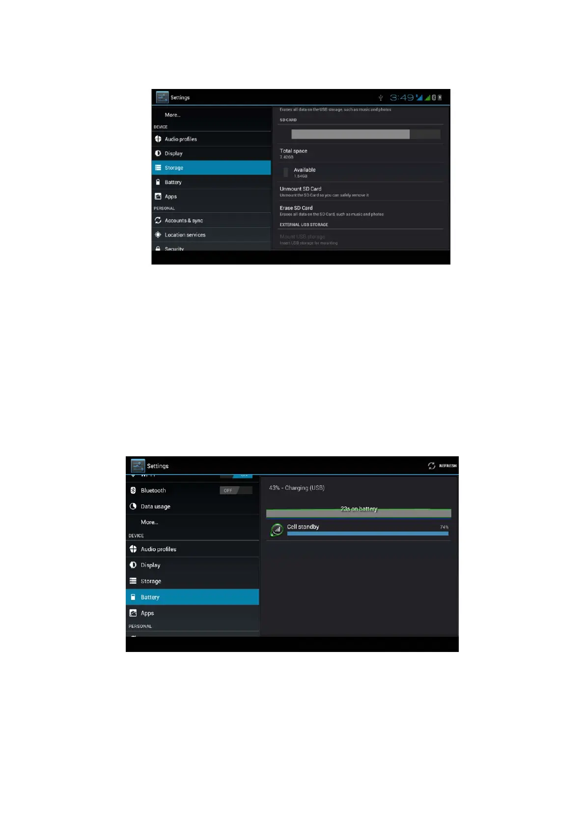 Vaya al menú de configuración y seleccione la opción Batería: