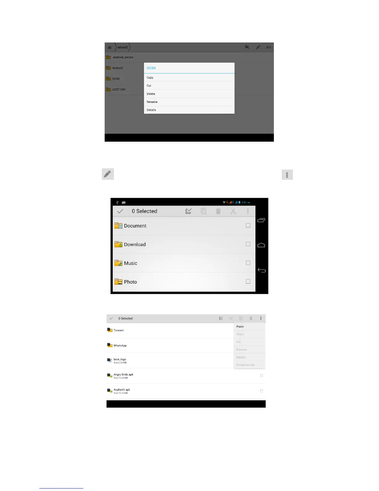 -Paste the copy or cut file: choose the file you want to paste, choose
