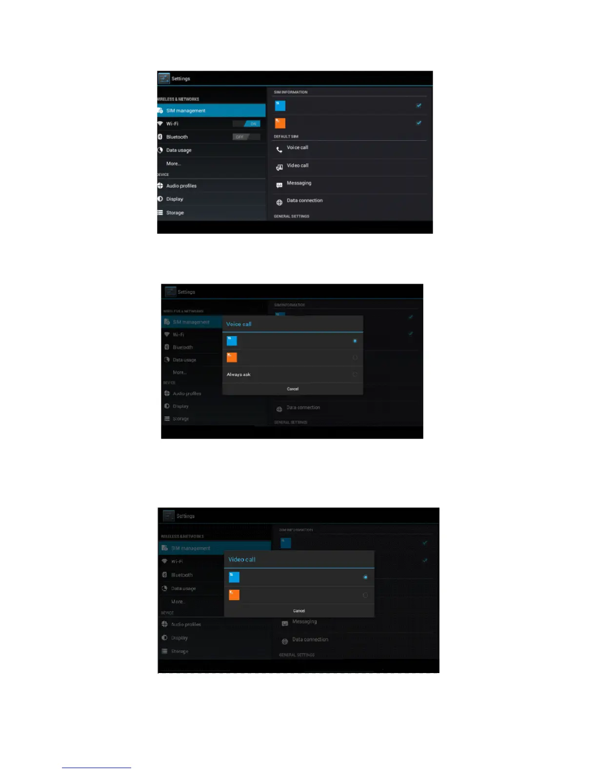 Haz clic llamadas de voz, seleccione la tarjeta SIM por defecto: