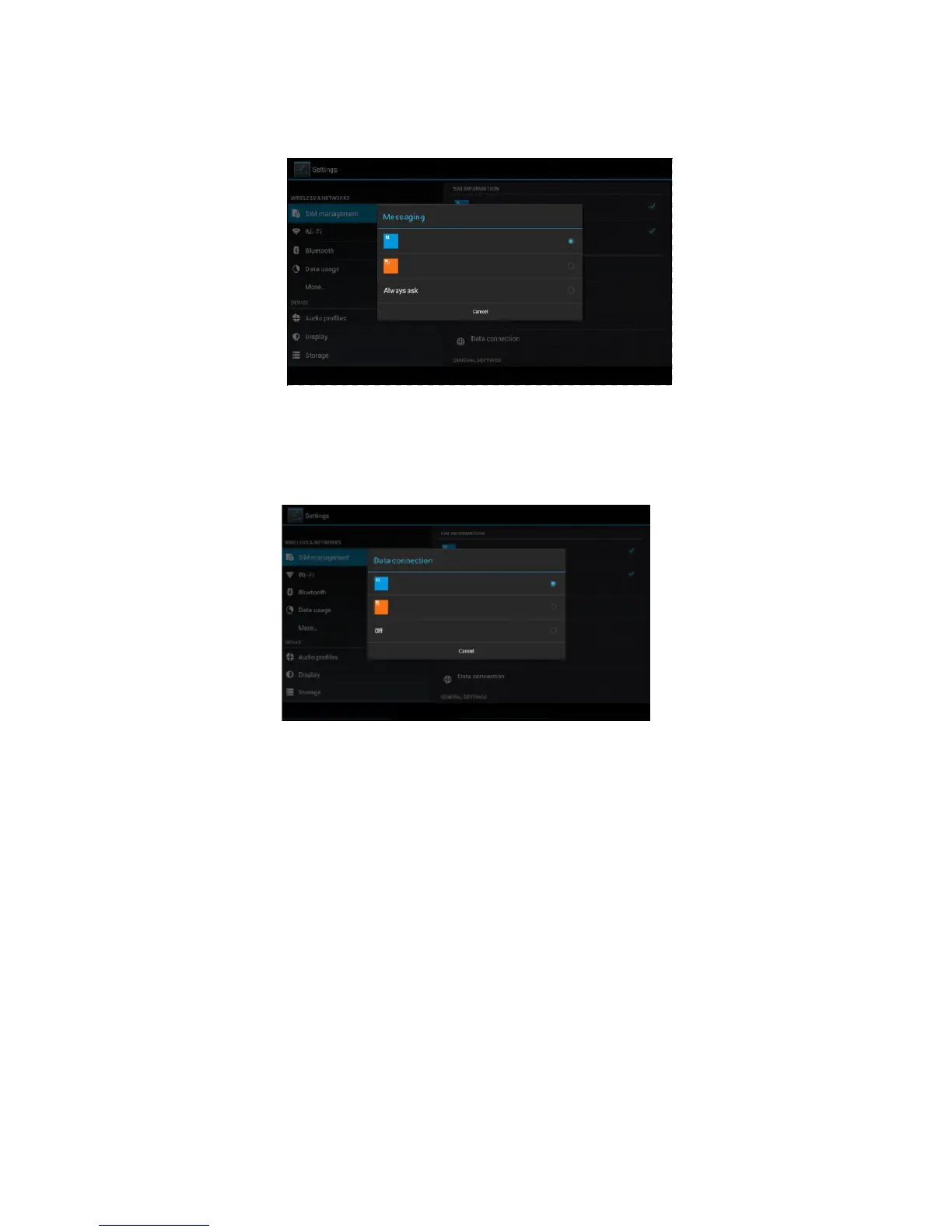 click data connection, choose the defaulted SIM card, as Picture 4.5