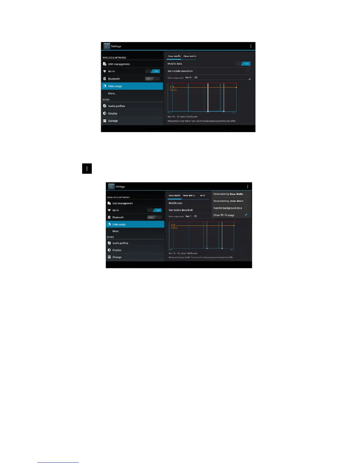 Click icon in right top of Picture 4.15, click Data Usage, as Picture 4.16