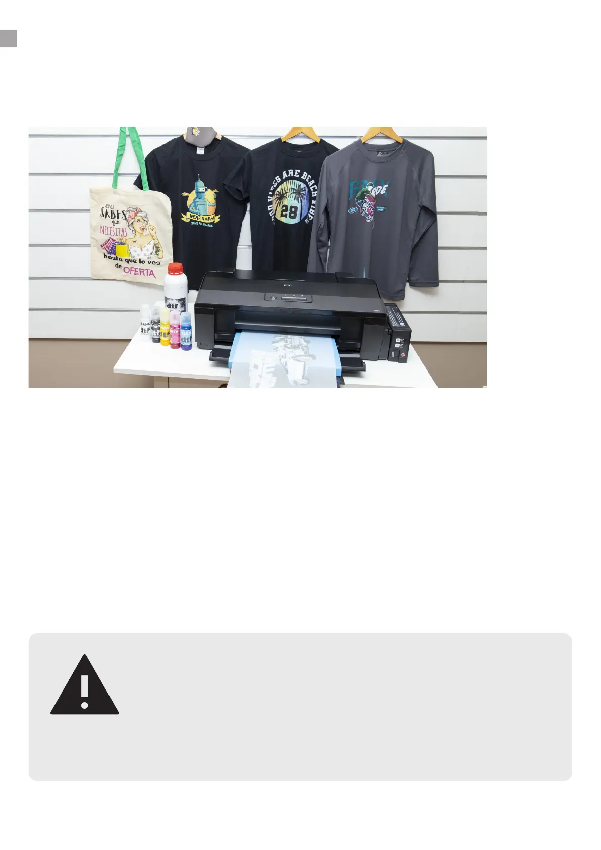 printing. But unlike DTG printing, the ink will be printed on a lm, and special powder will be