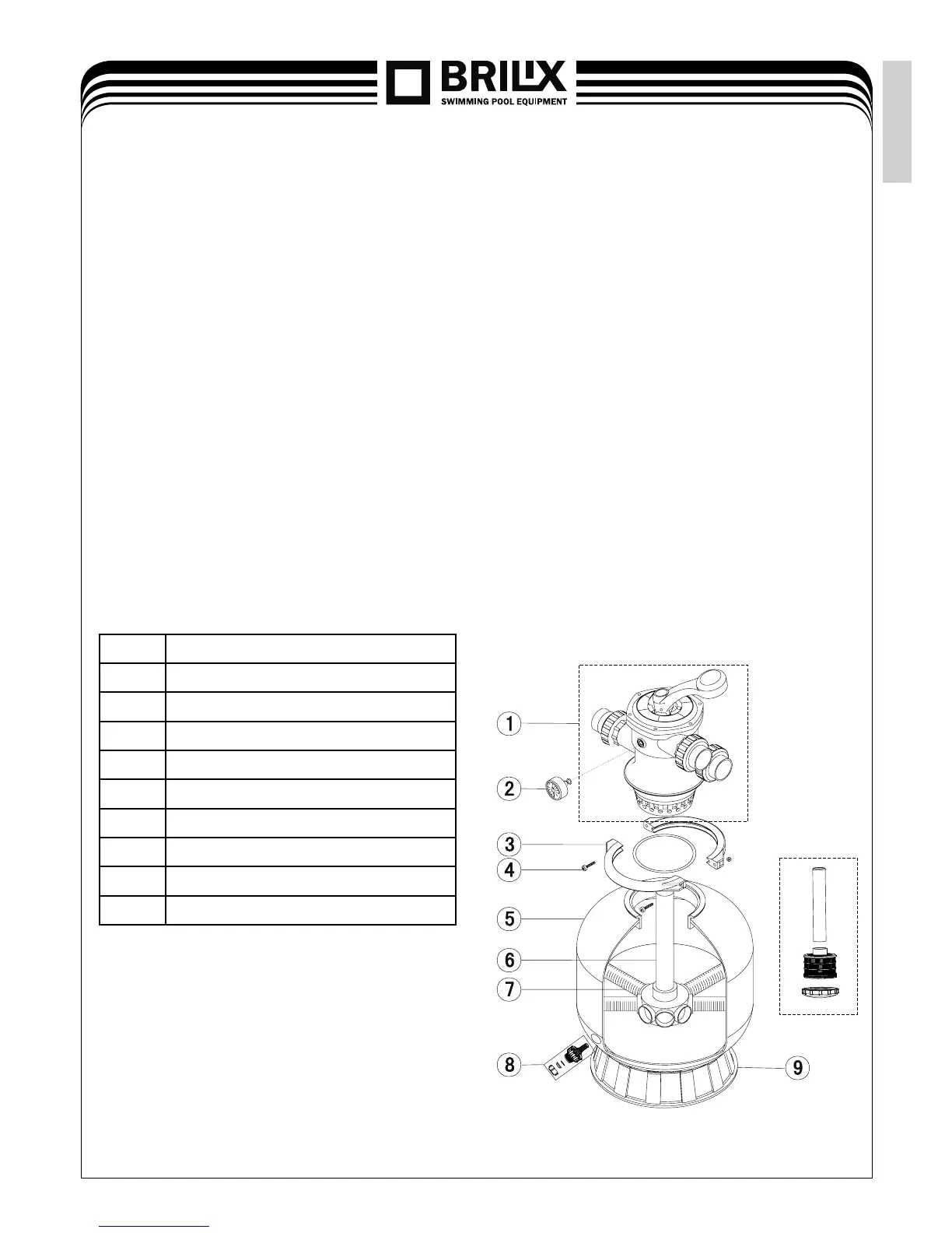Note: During the fi rst cleaning of the new pool water there might be necessary to rinse the fi ltration sand