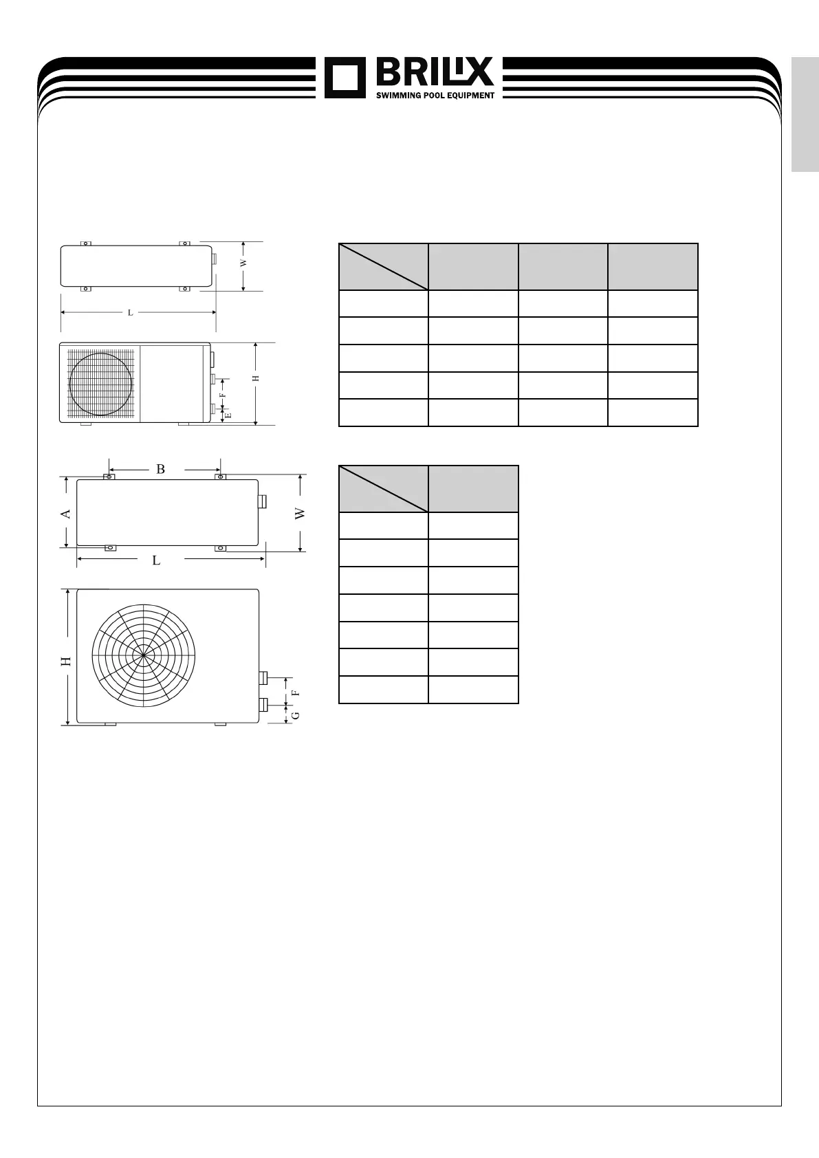 Dimensions of heat pumps (monoblock-type) for swimming pools
