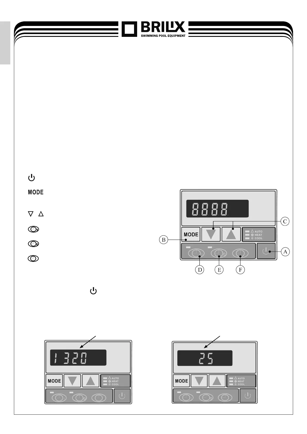 mode. Pushing the button will activate the heat pump. The control unit display will now show the
