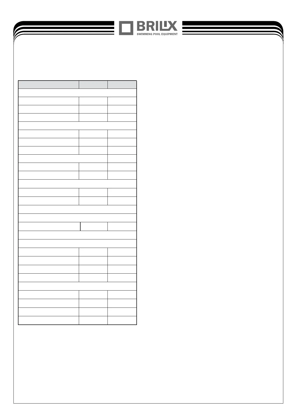 Advised pool volume (m