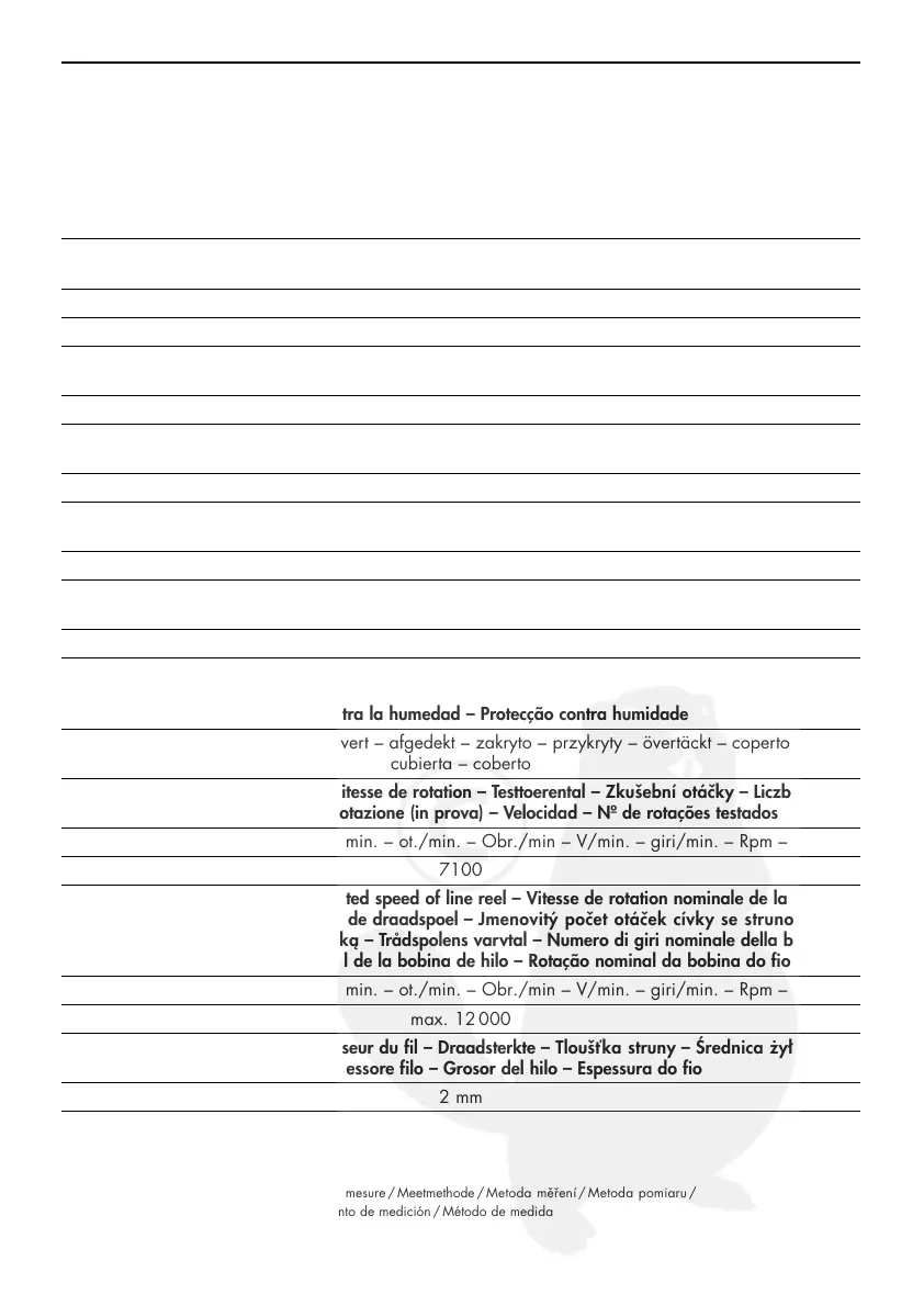 Nenndrehzahl der Fadenspule – Rated speed of line reel – Vitesse de rotation nominale de la bobine