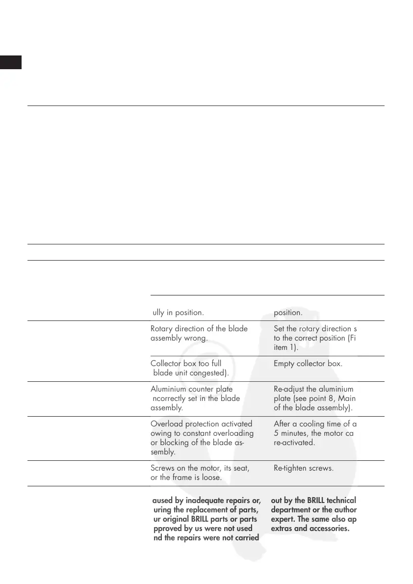 through. incorrectly set in the blade plate (see point 8, Maintenance