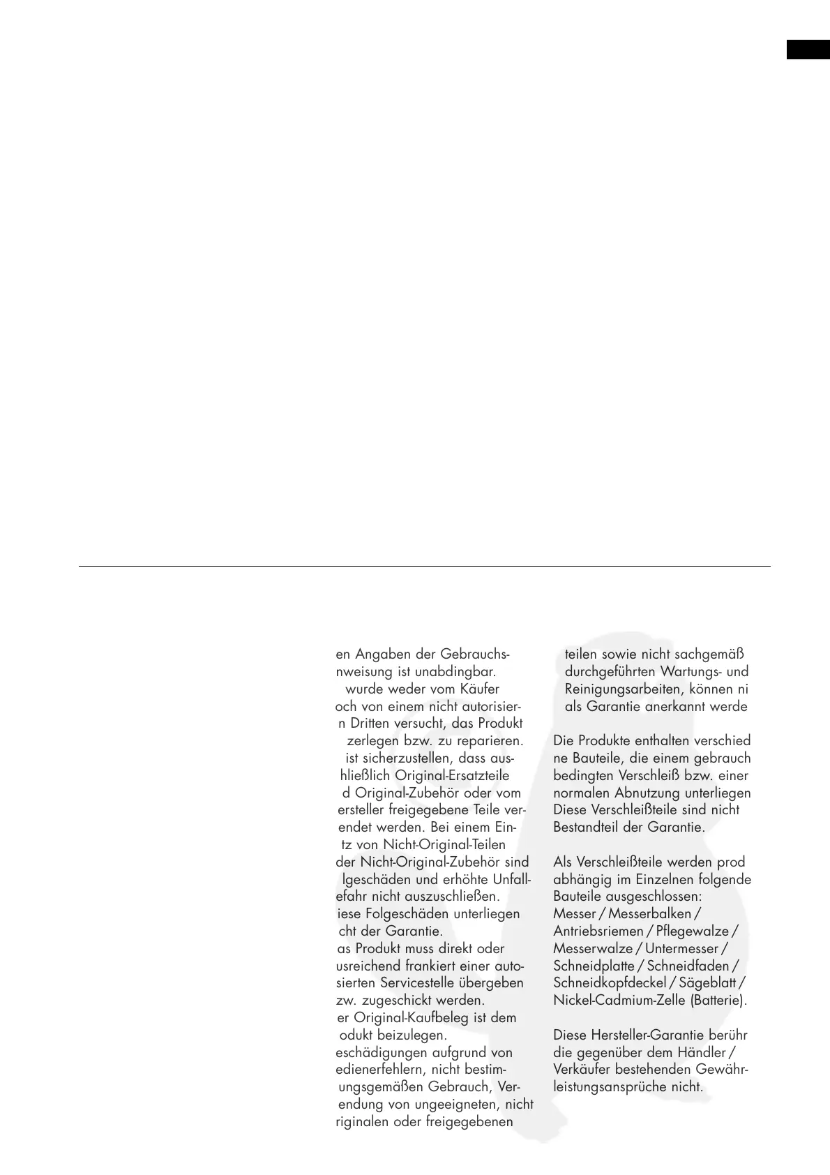nicht der Garantie.