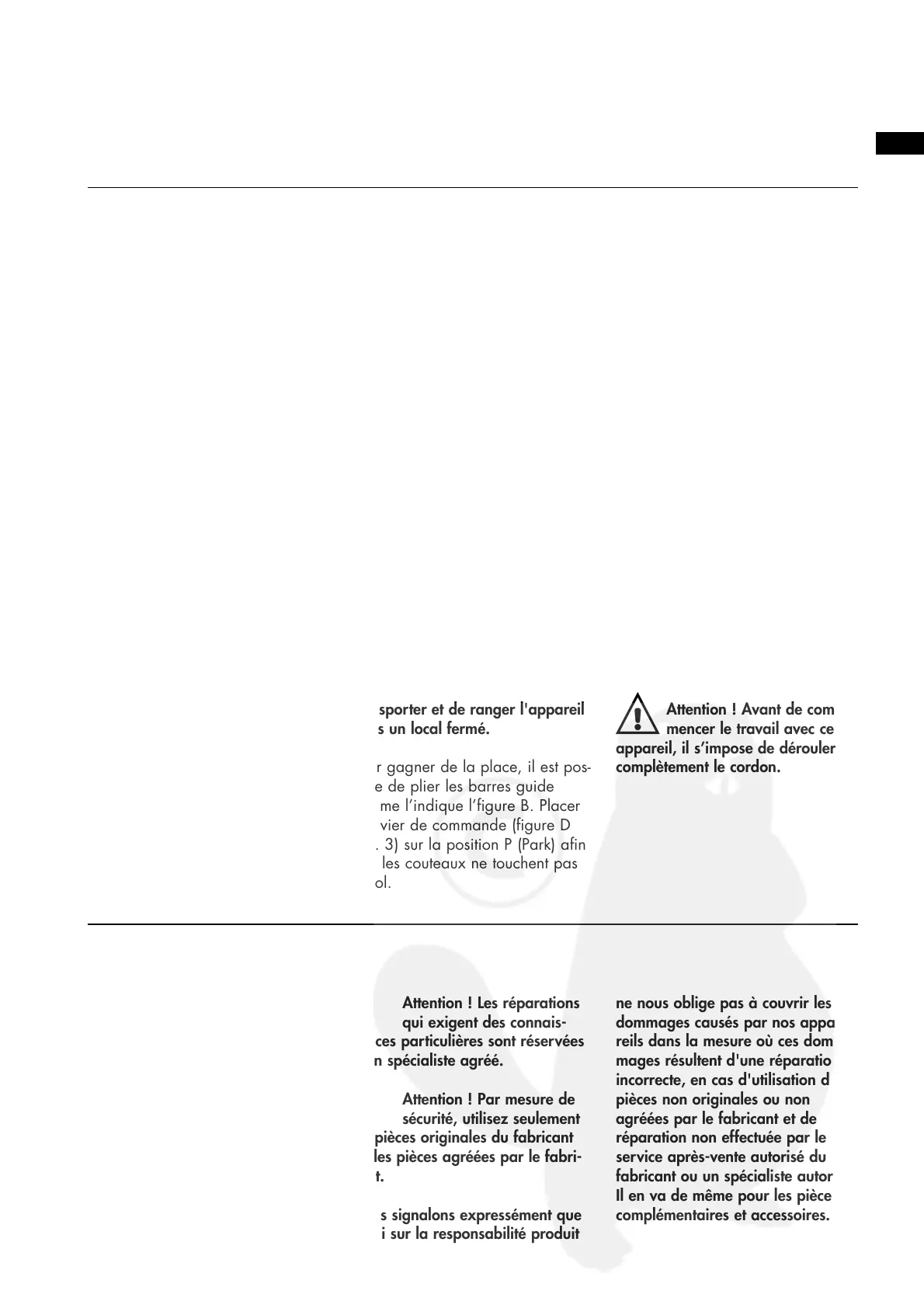 Par mesure de sécurité, les répa-