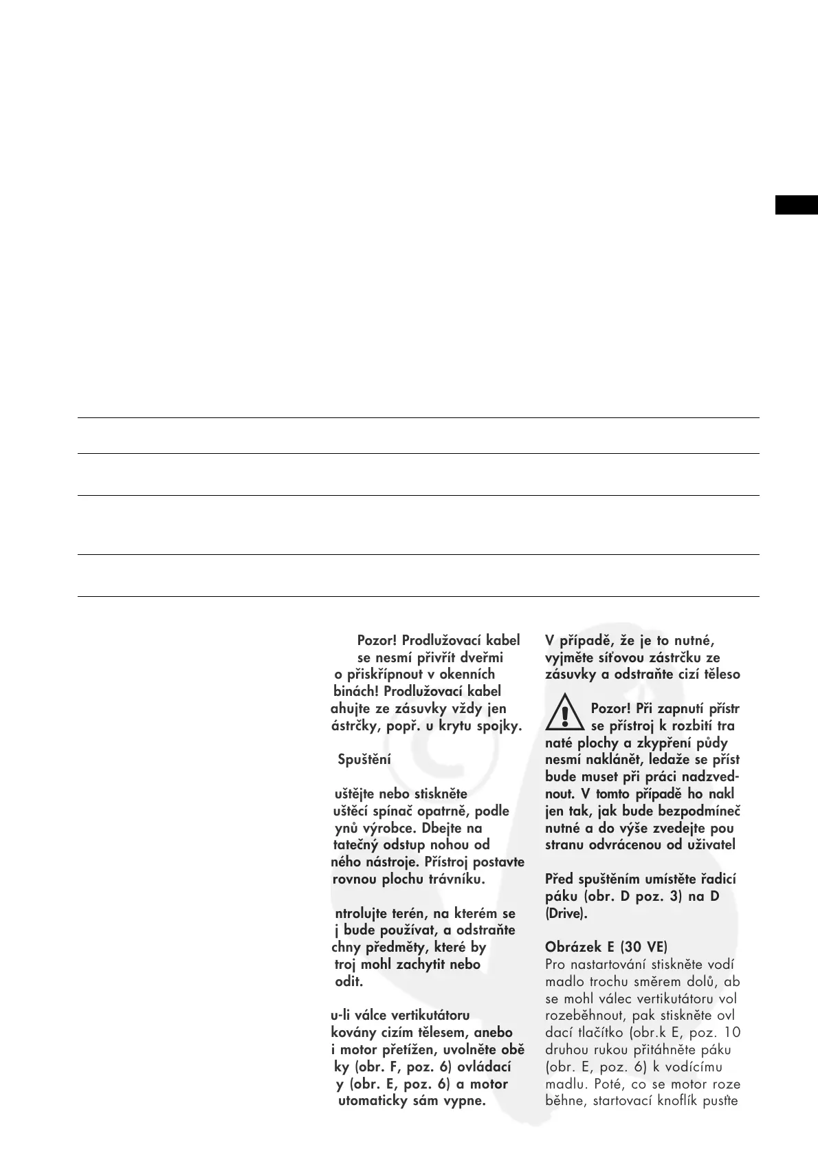 neudržovaná plocha, silně prorostlá mechem začněte s malou pracovní hloubkou