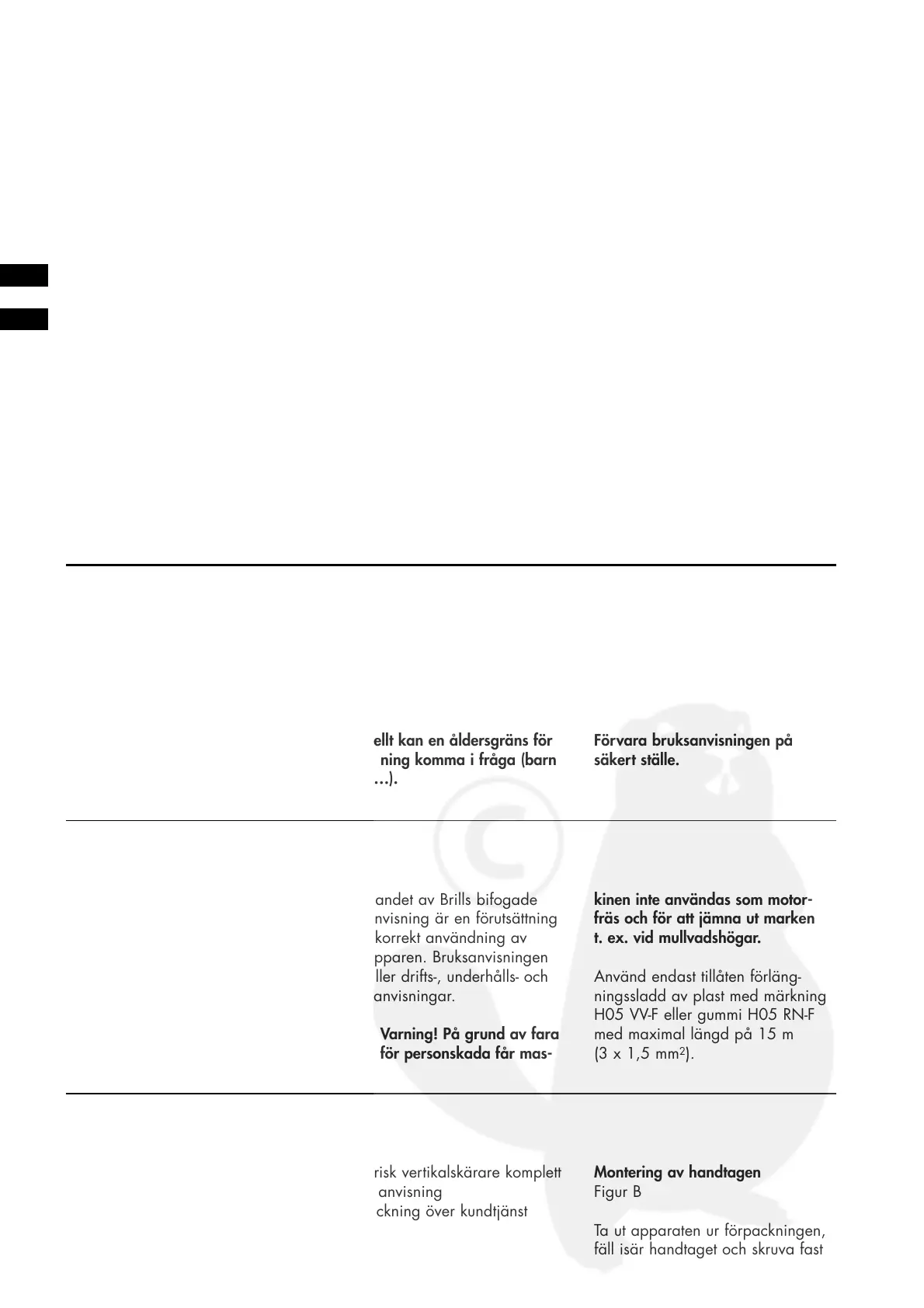 4. Anmärkningar för bruksanvisning