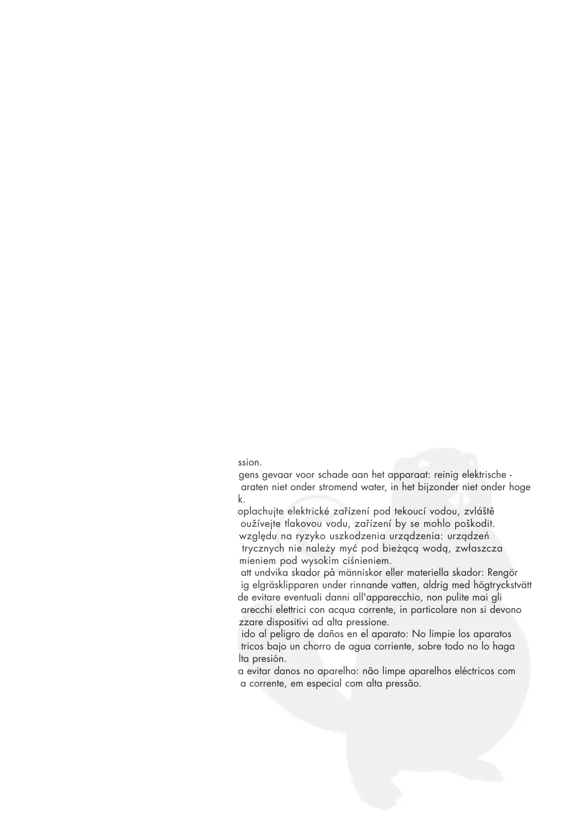 apparaten niet onder stromend water, in het bijzonder niet onder hoge