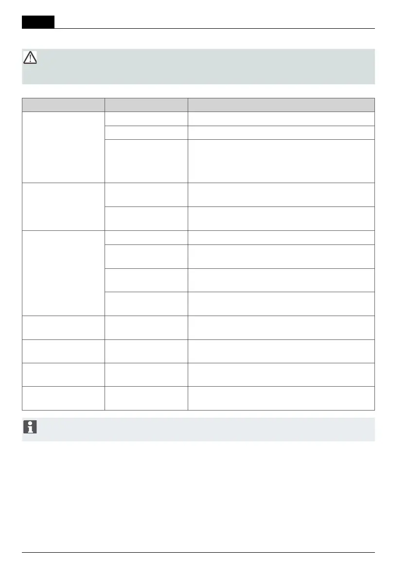 Vid störningar som inte anges i denna tabell eller som ni inte kan åtgärda själv, var vänlig kontakta vår ansvariga