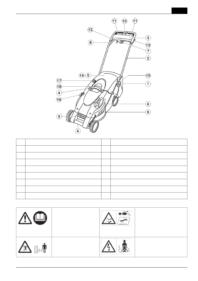 9 Вентиляційні щілини 18 Фіксуючий пристрій кришки травозбірника