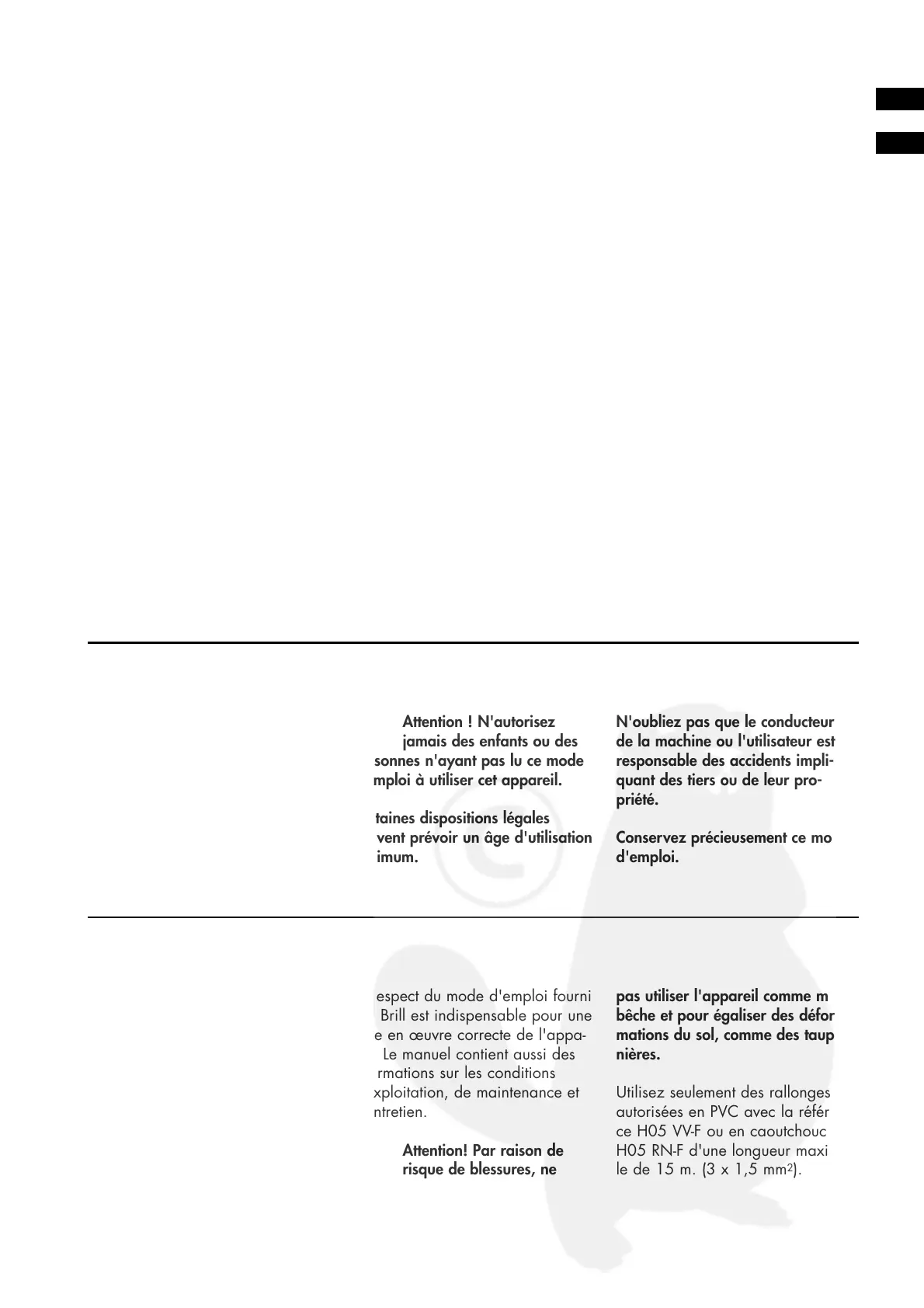 pas utiliser l'appareil comme moto-