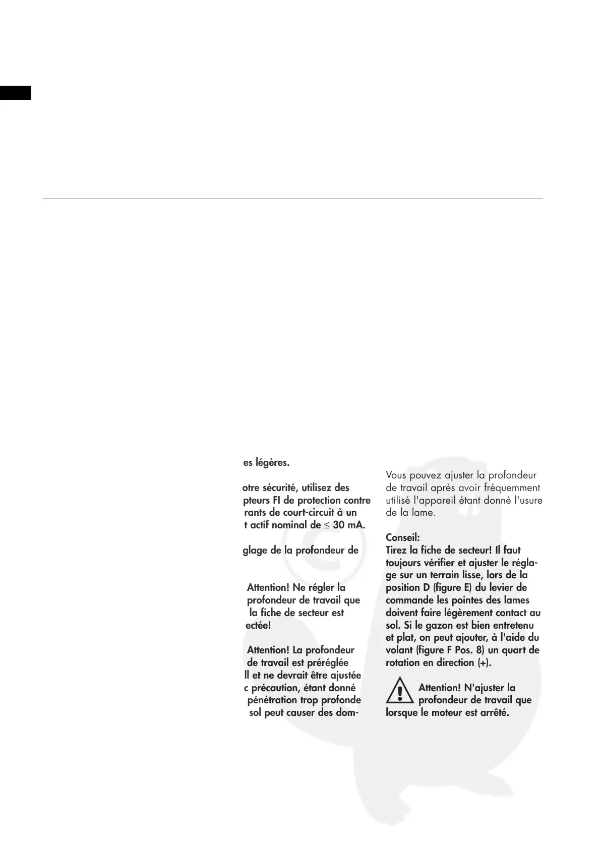 volant (figure F Pos. 8). La profon-