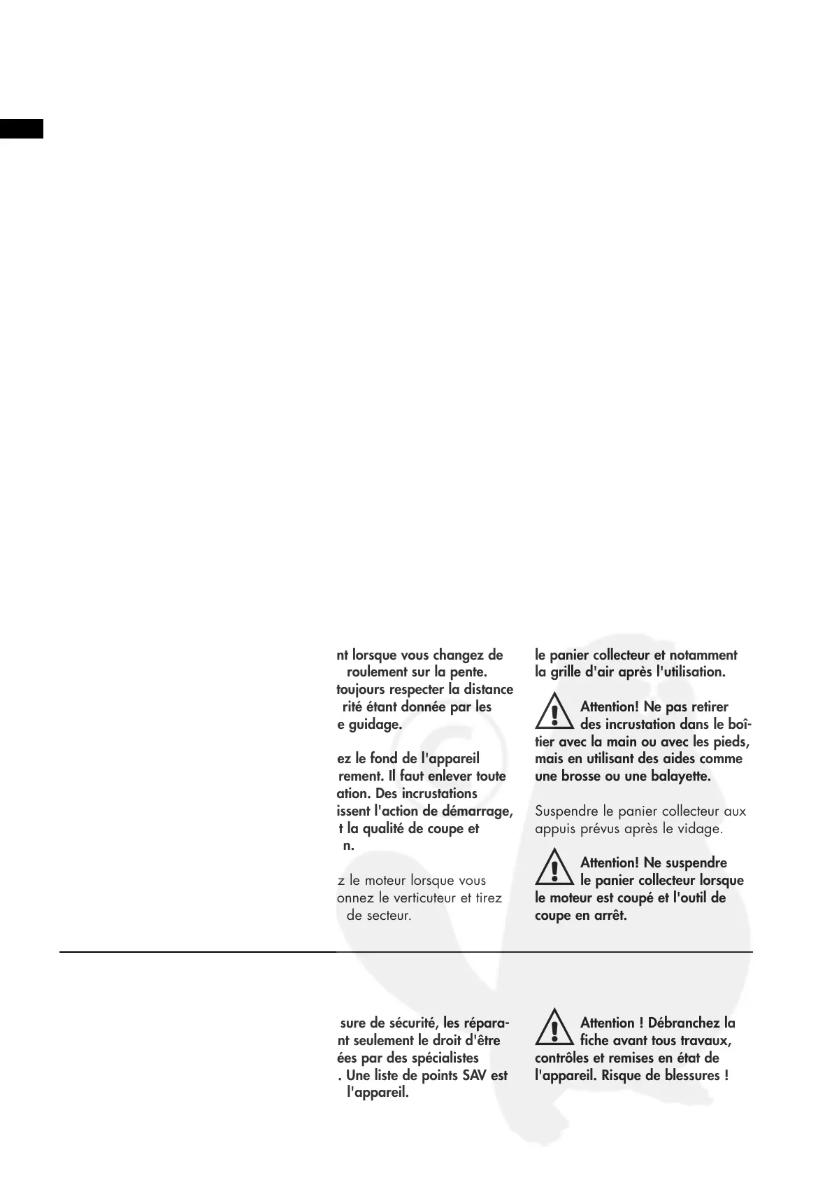 l'appareil. Risque de blessures !