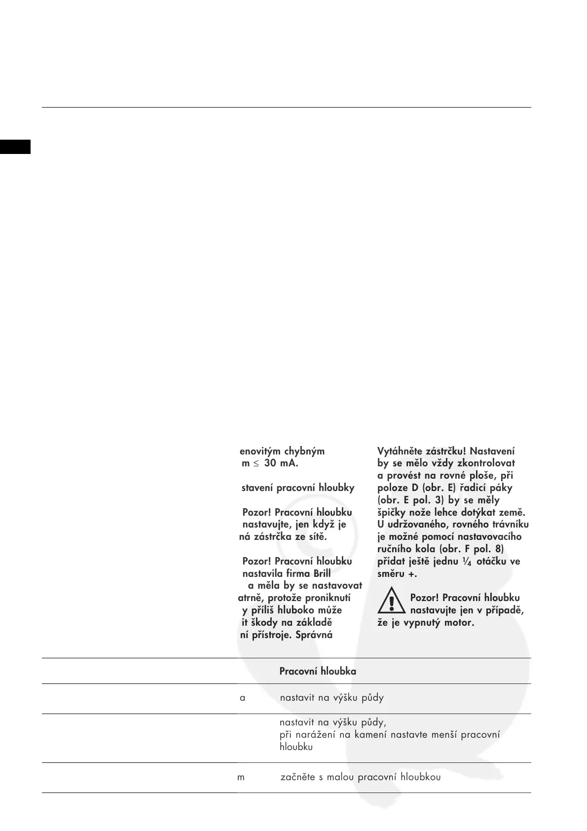 Pozor! Pracovní hloubku