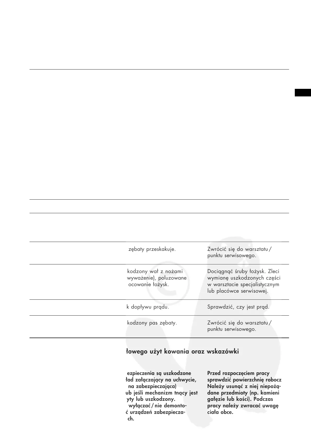Sprawdzić, czy jest prąd.Brak dopływu prądu.Nie pracuje silnik.