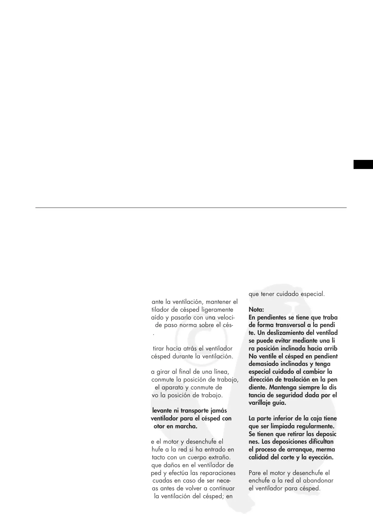No ventile el césped en pendientes