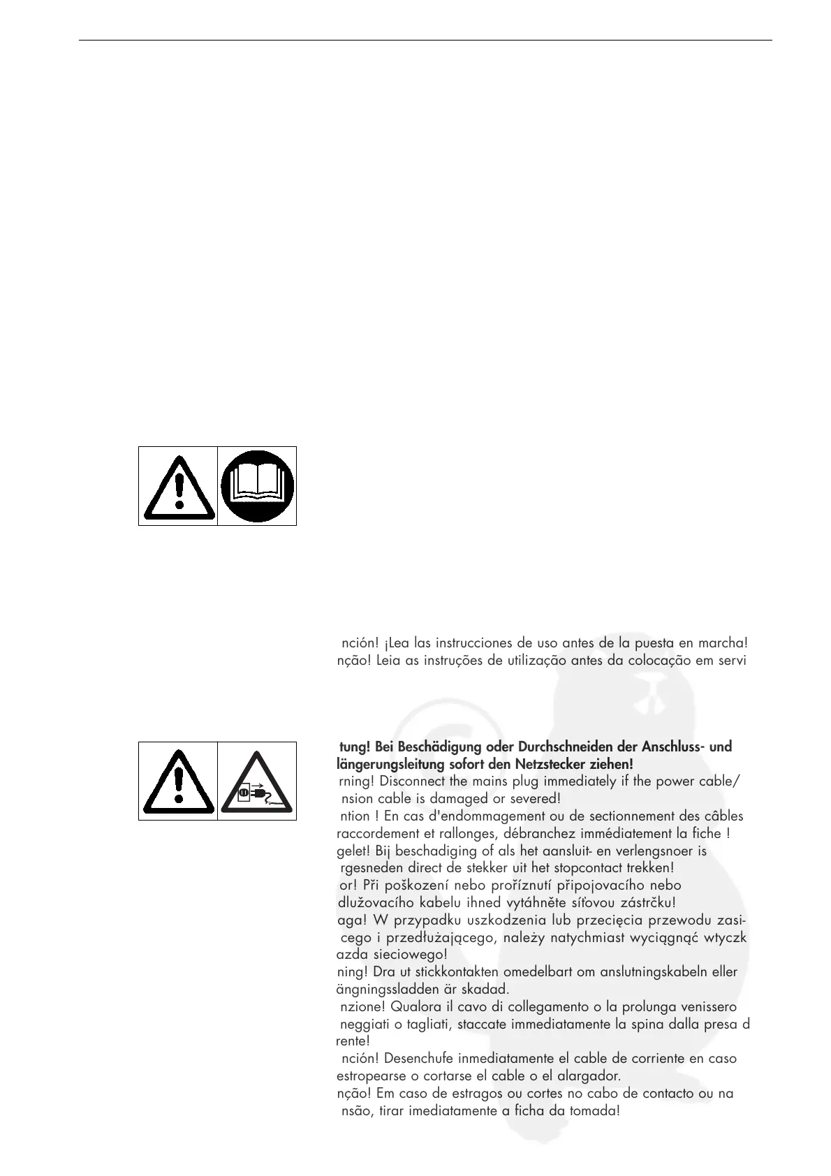 Avvertenze di sicuezza – Indicaciones de seguridad – Instruções de segurança
