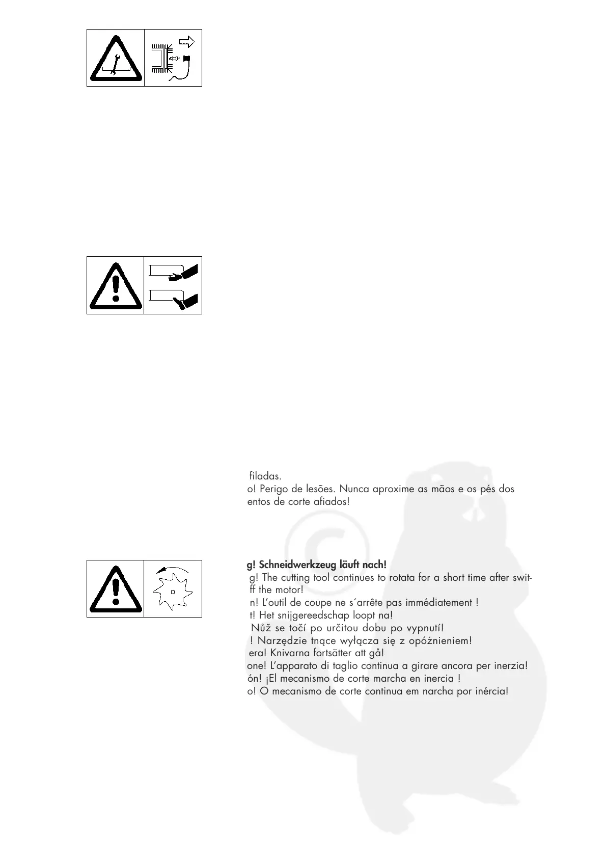 Attention! L’outil de coupe ne s´arrête pas immédiatement !