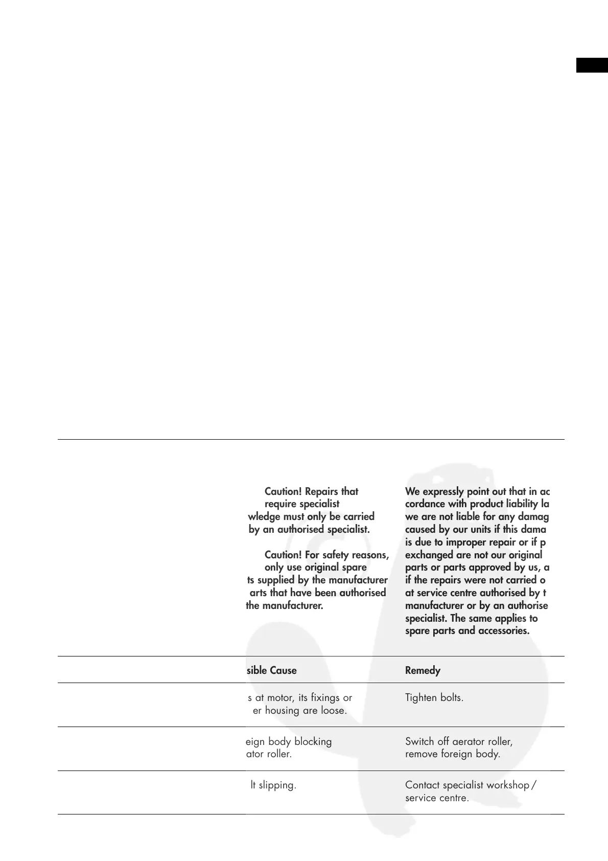 Fault Possible Cause Remedy