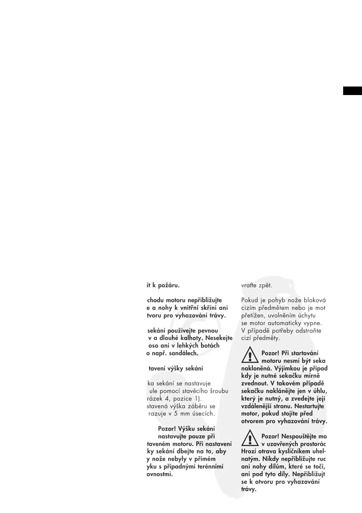 motoru nesmí být sekačka