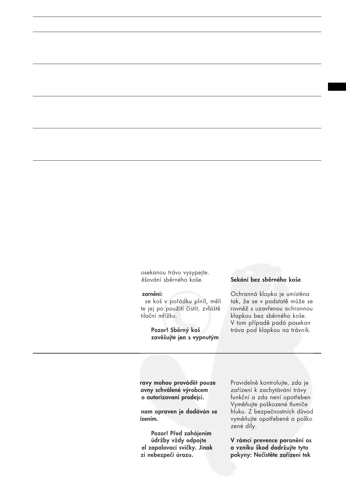 Použití provzdušňovacího válce Nastavení výšky záběru Účinnost provzdušňovacího válce