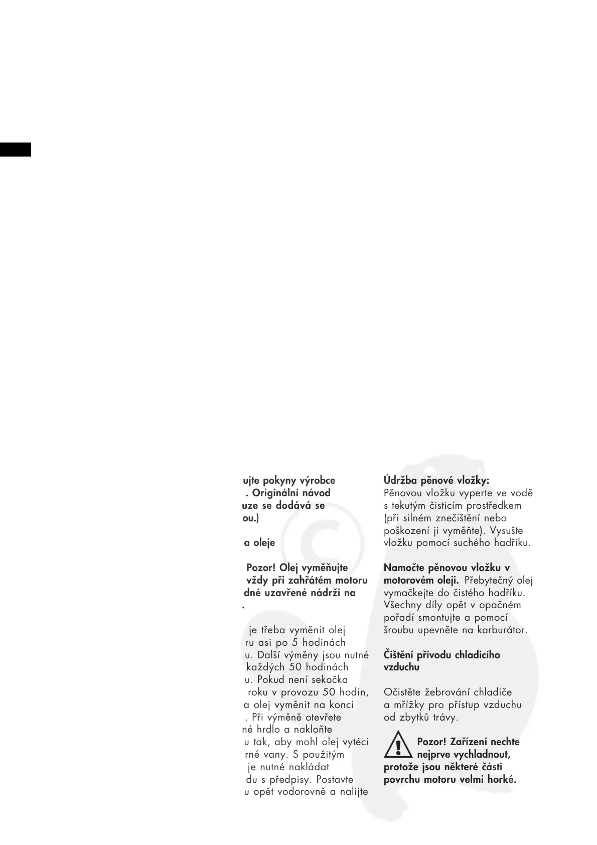 motoru. Originální návod