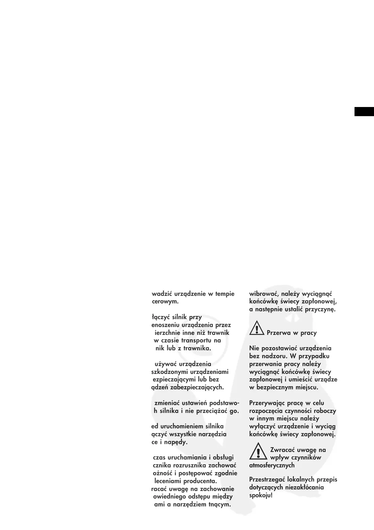 Nie uruchamiać silnika stojąc