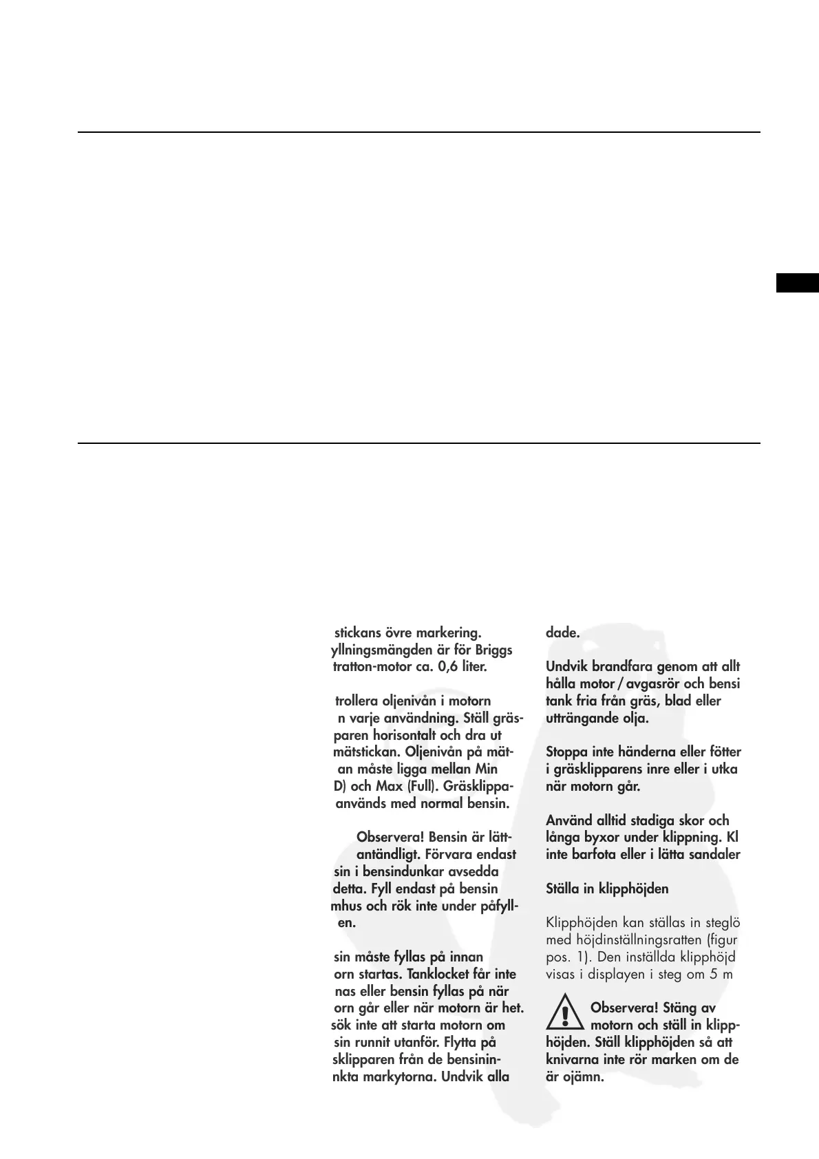 Observera! Motorn levere-