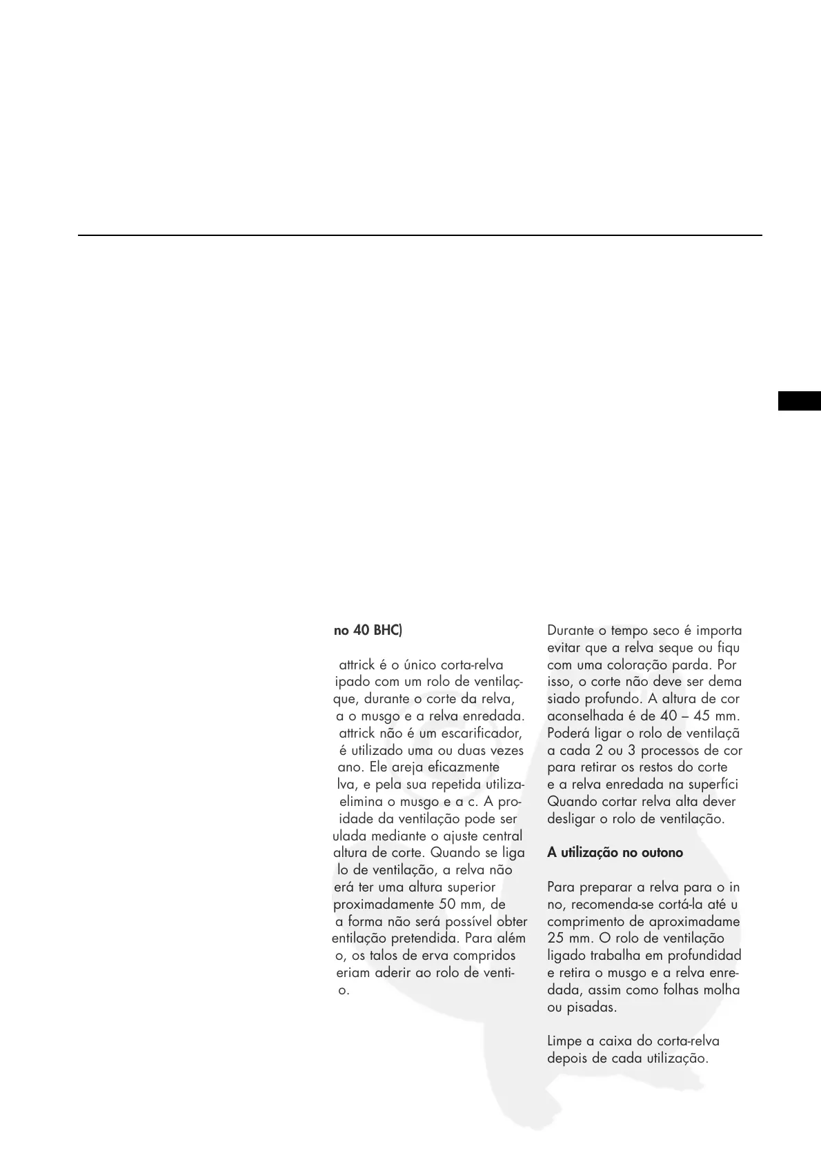 40 BHC) e cortar a relva, recomen-