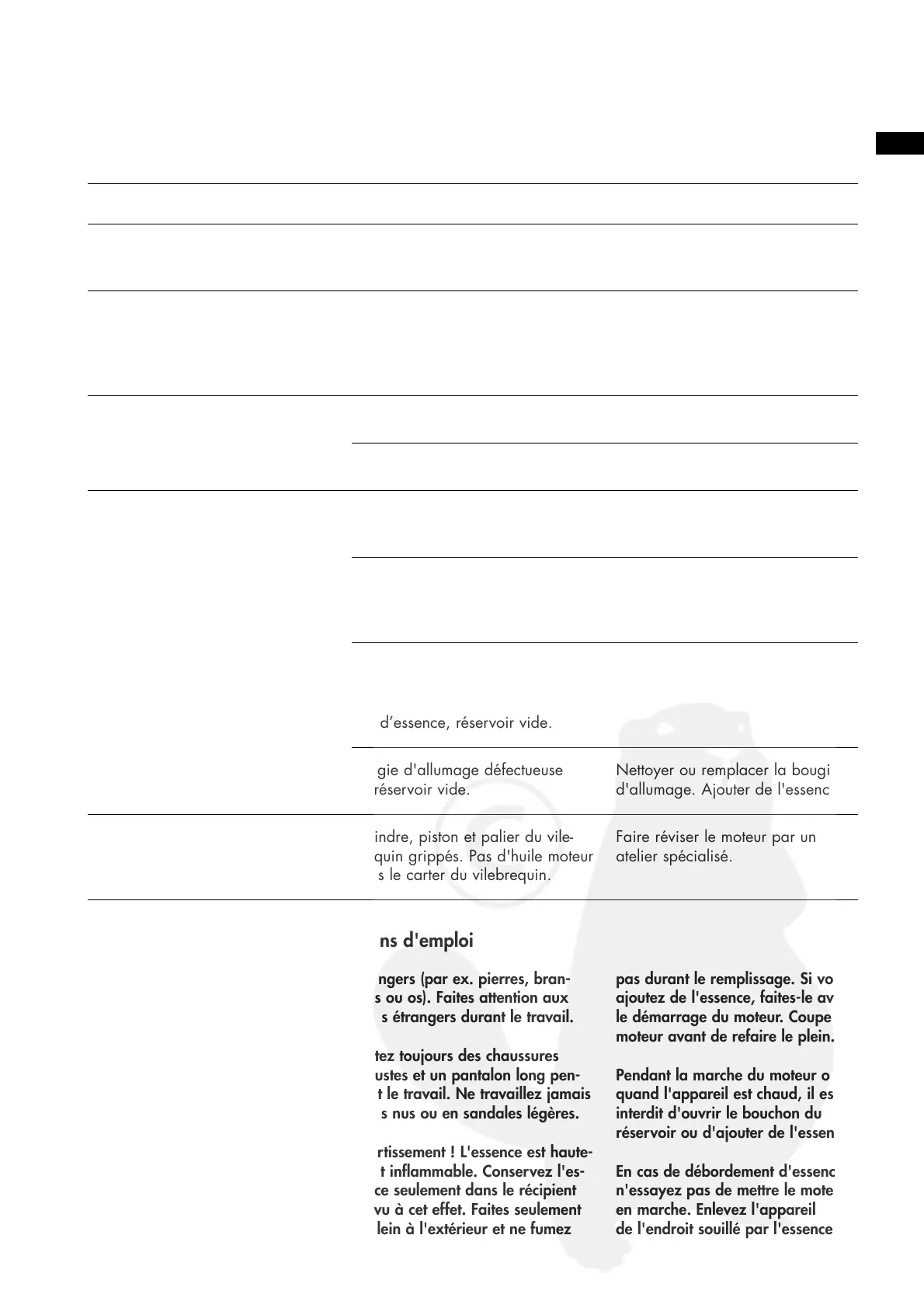 S'adresser à un atelier/point SAV.Courroie d’entraînement défectueuse.Rouleau à lames ne se tourne pas.