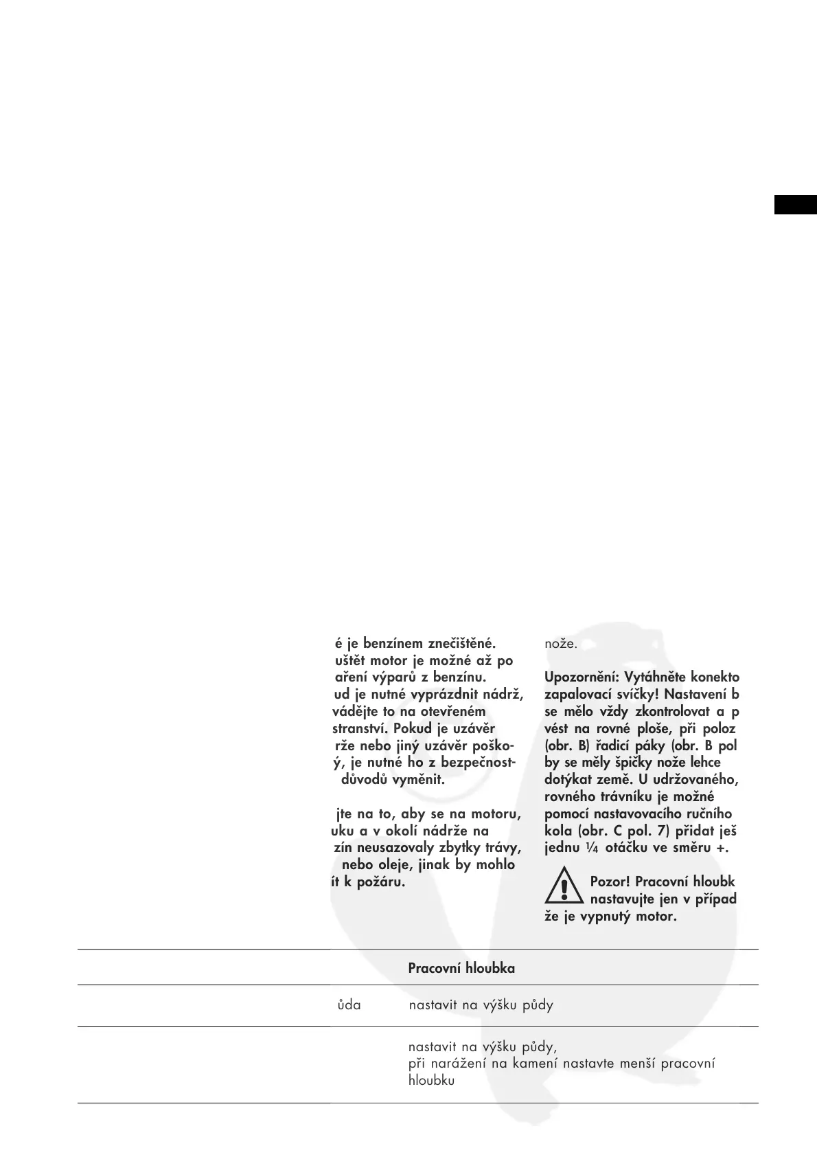 při narážení na kamení nastavte menší pracovní