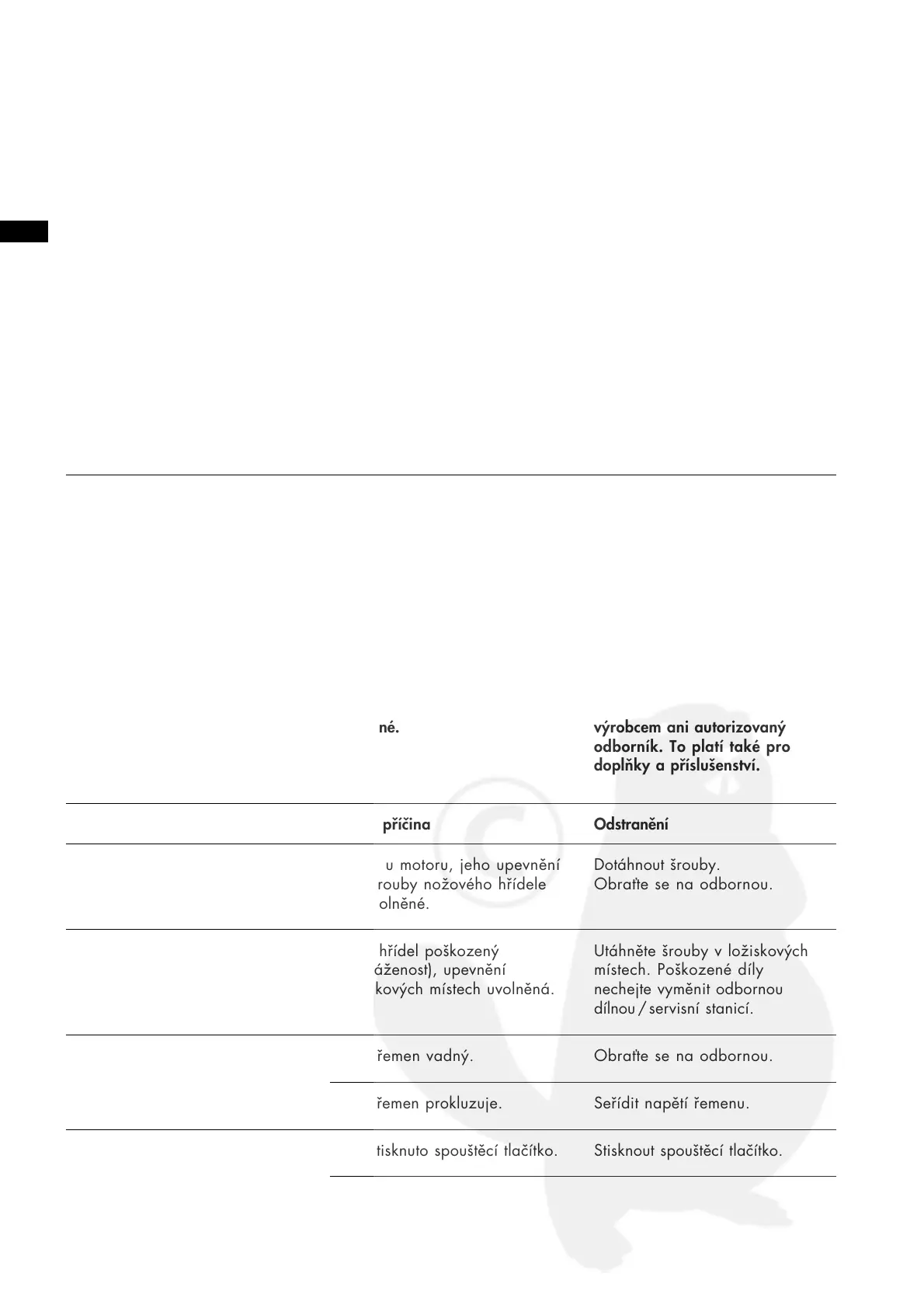 Seřídit napětí řemenu.Hnací řemen prokluzuje.