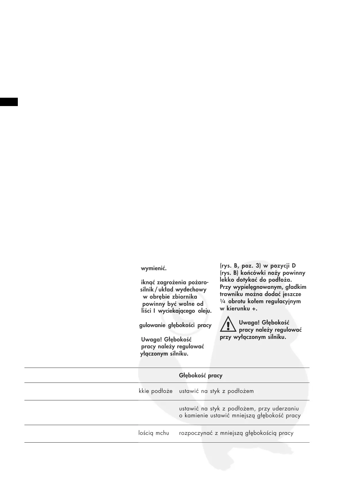 powierzchni. Nie włączać kosiarki