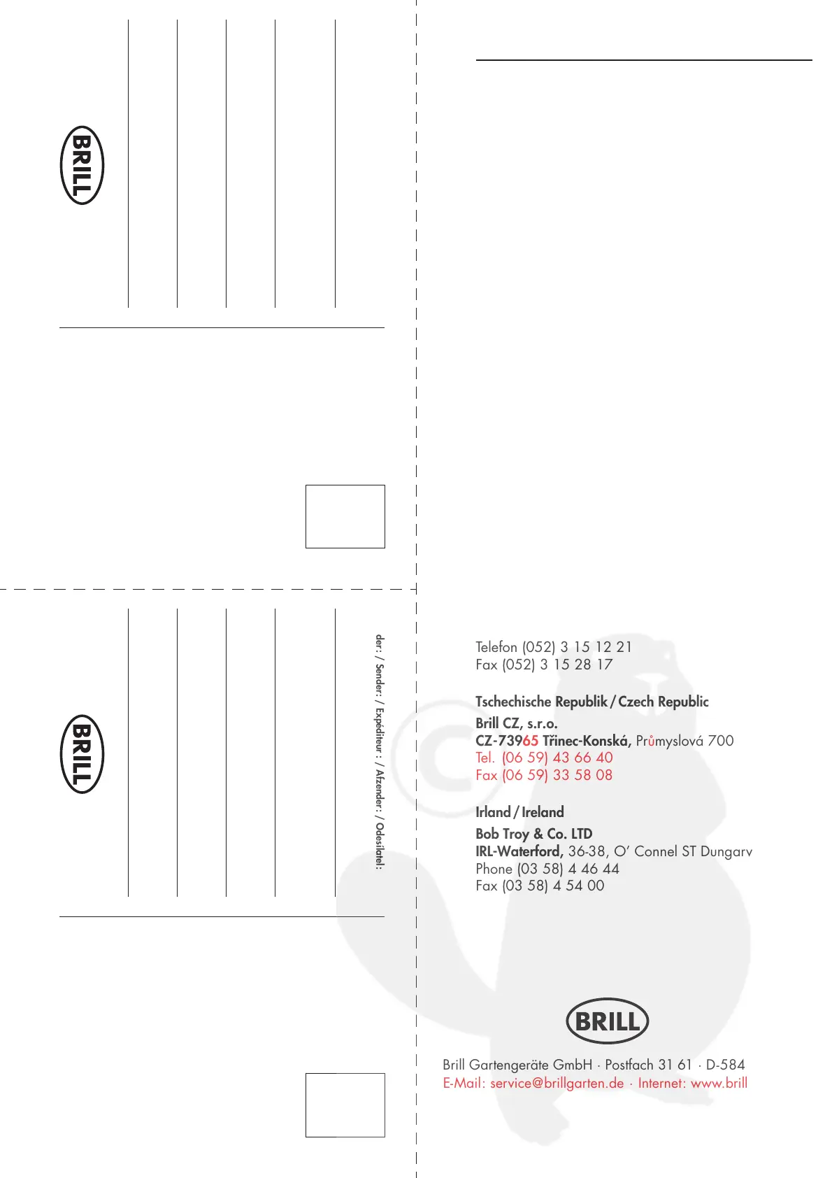 Brill Gartengeräte GmbH · Postfach 31 61 · D-58422 Witten
