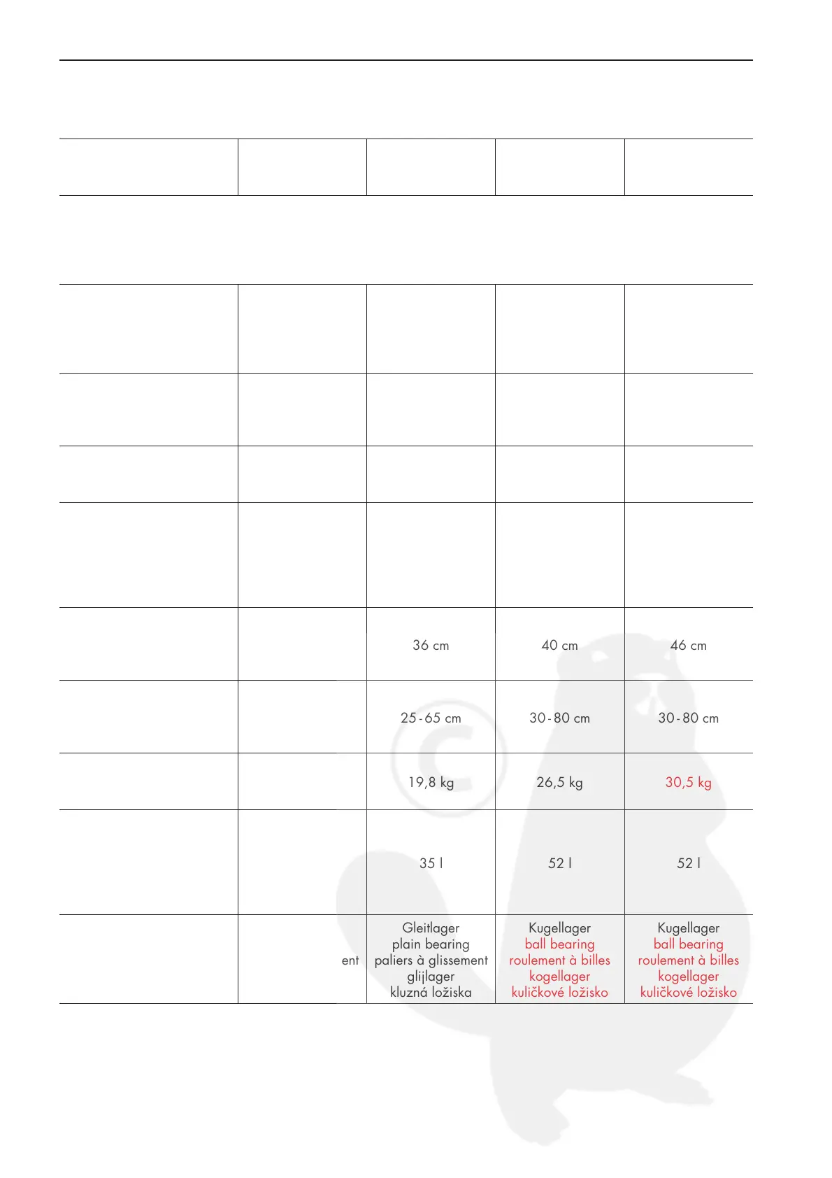 Weight / Poids / 18,5 kg 19,8 kg 26,5 kg 30,5 kg