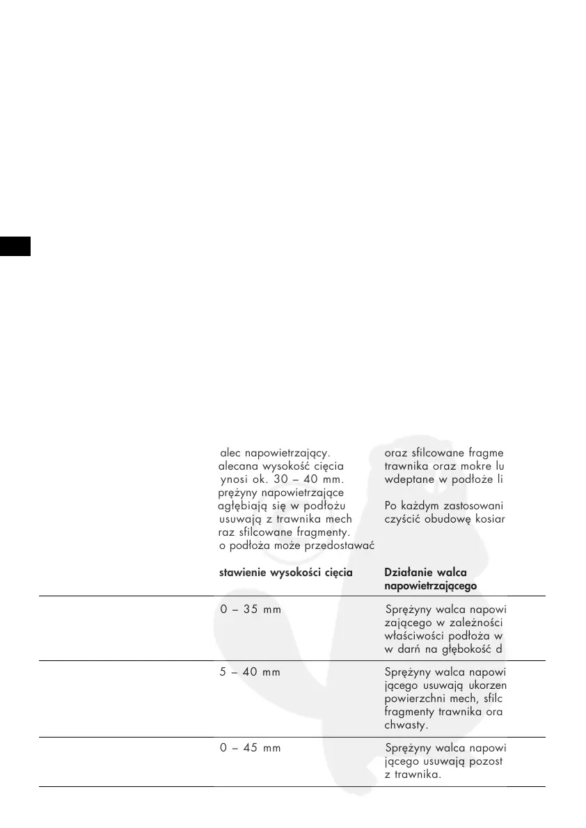Napowietrzanie głębokie. 30 – 35 mm Sprężyny walca napowietr-
