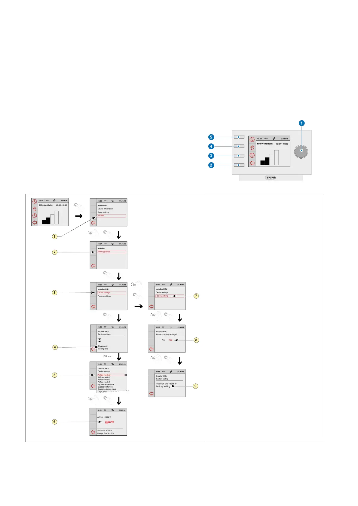 ▪ Press setting knob "1";‘Installer’ opens,