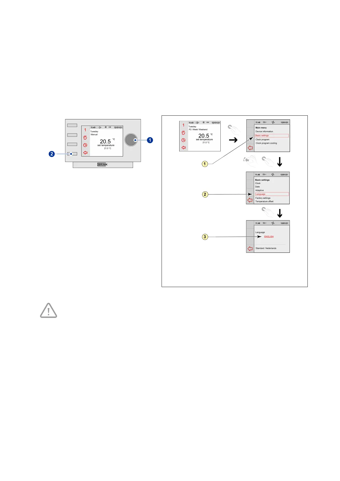 items if the Air Control - Allure clock thermostat is set to a language other than Englisch.
