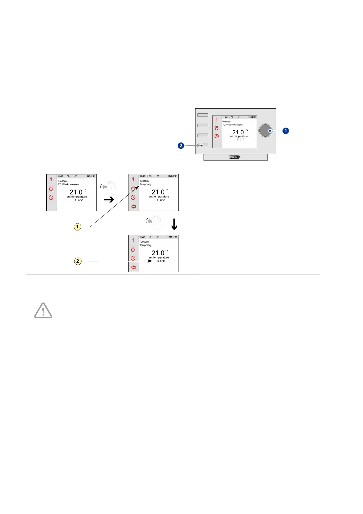 Note: At least 2 periods must be programmed, otherwise the temporary temperature setting